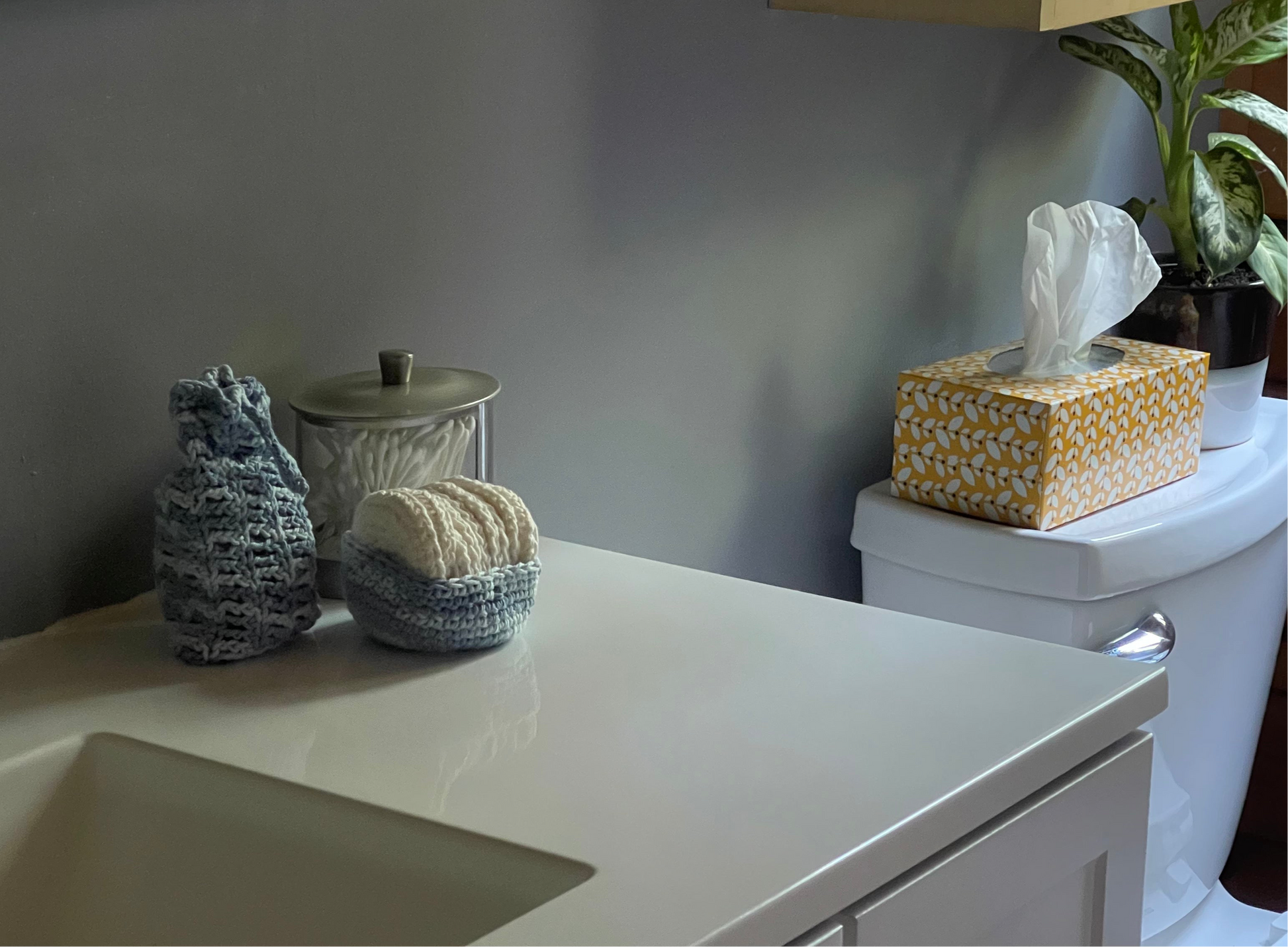 Set of 10 cotton rounds, small laundry bag and storage basket