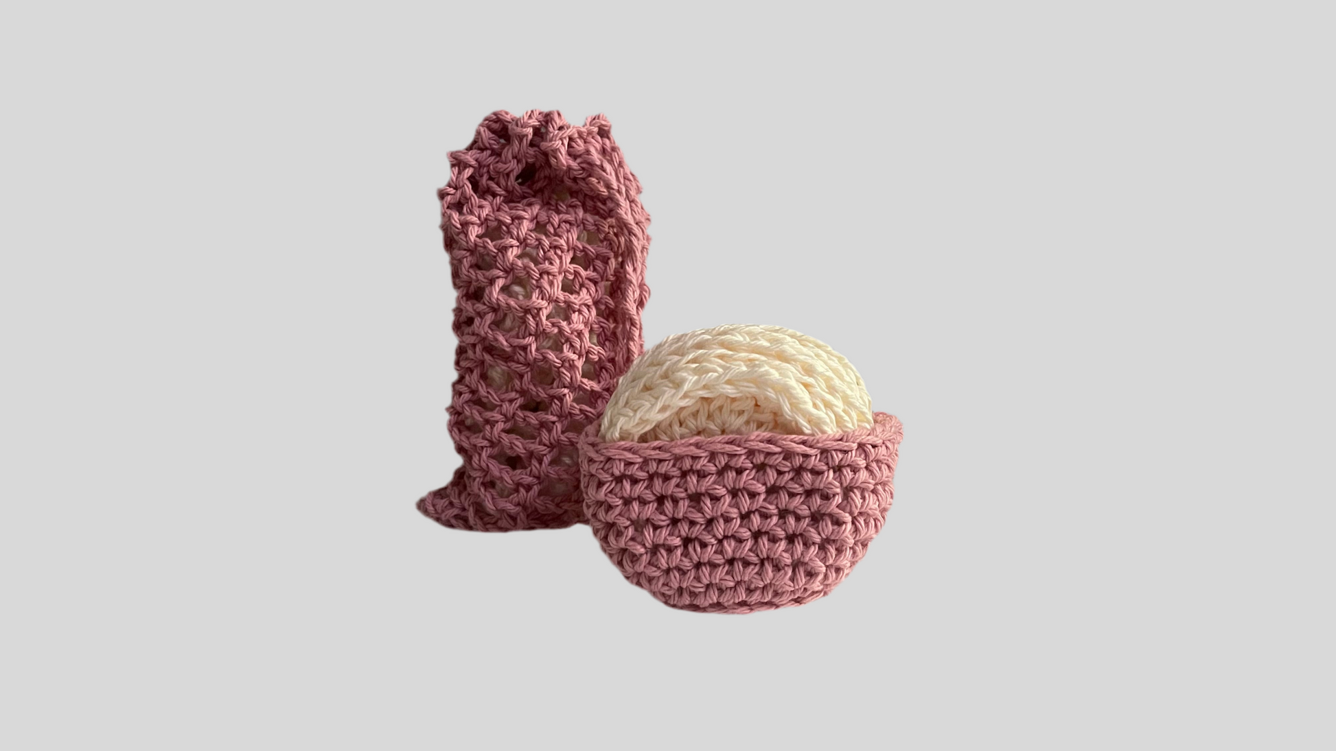 Set includes 10 cotton rounds, small laundry bag and storage basket