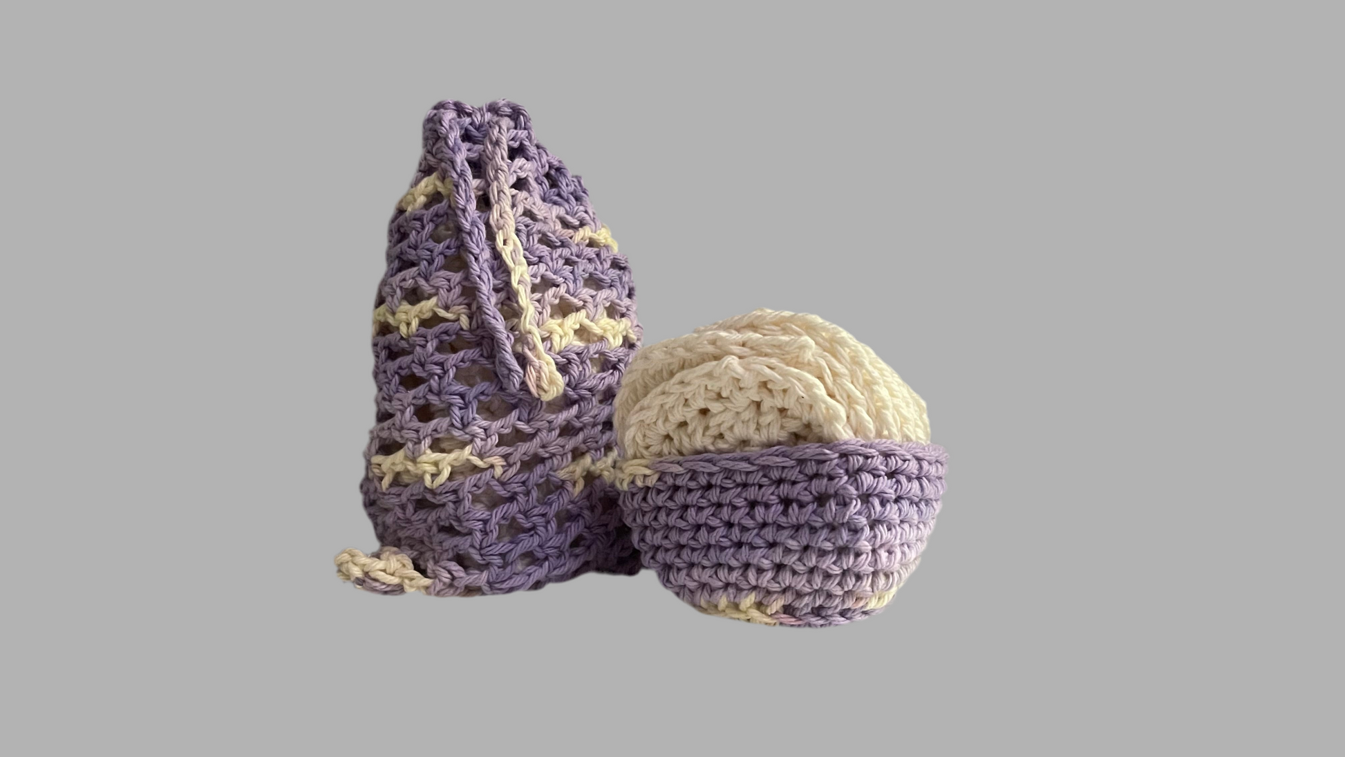 Set includes 10 cotton rounds, small laundry bag and storage basket