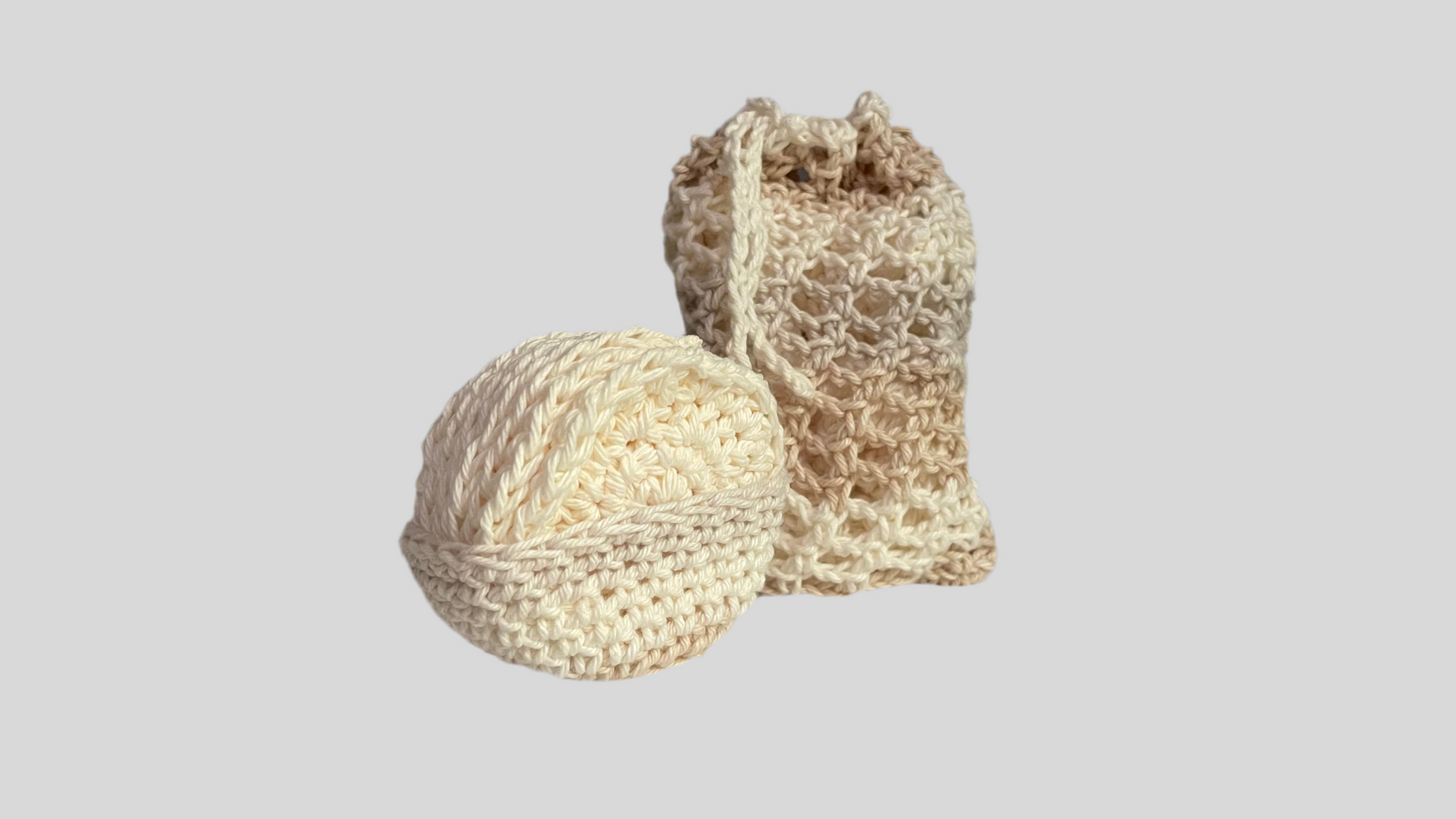 Set includes 10 cotton rounds, small laundry bag and storage basket