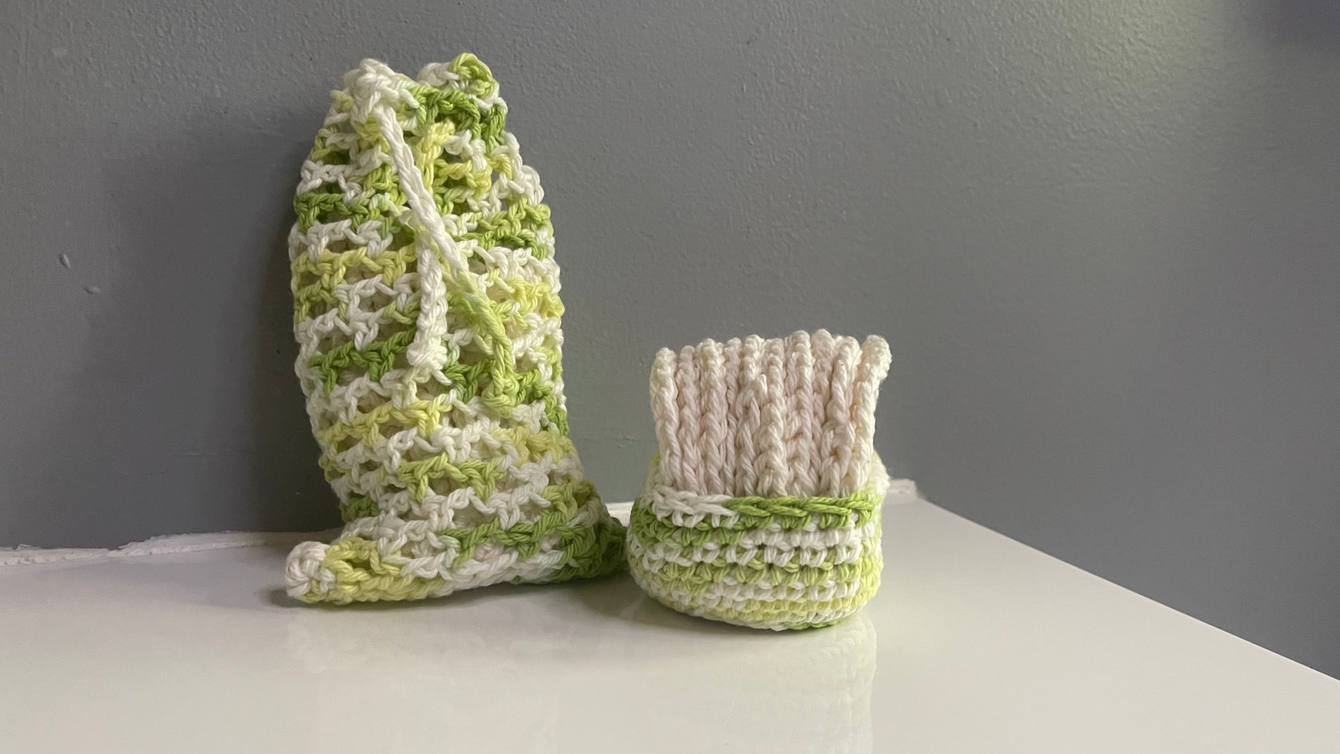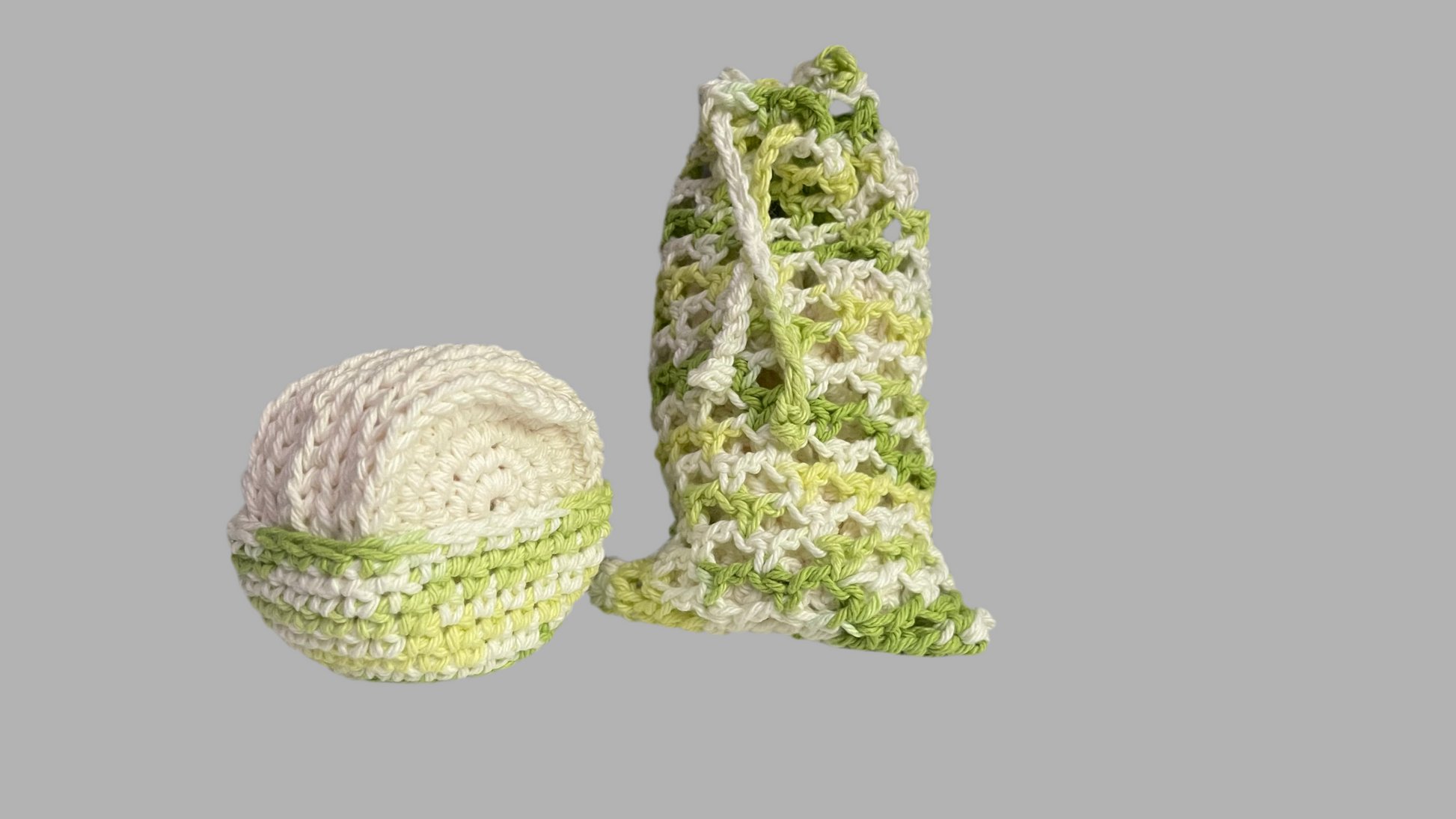 Set includes 10 cotton rounds, small laundry bag and storage basket